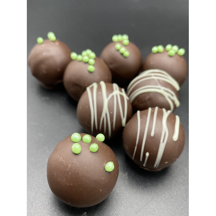 Начинка: сливочный ганаш со вкусом базилика; корпус: горький шоколад 65% |