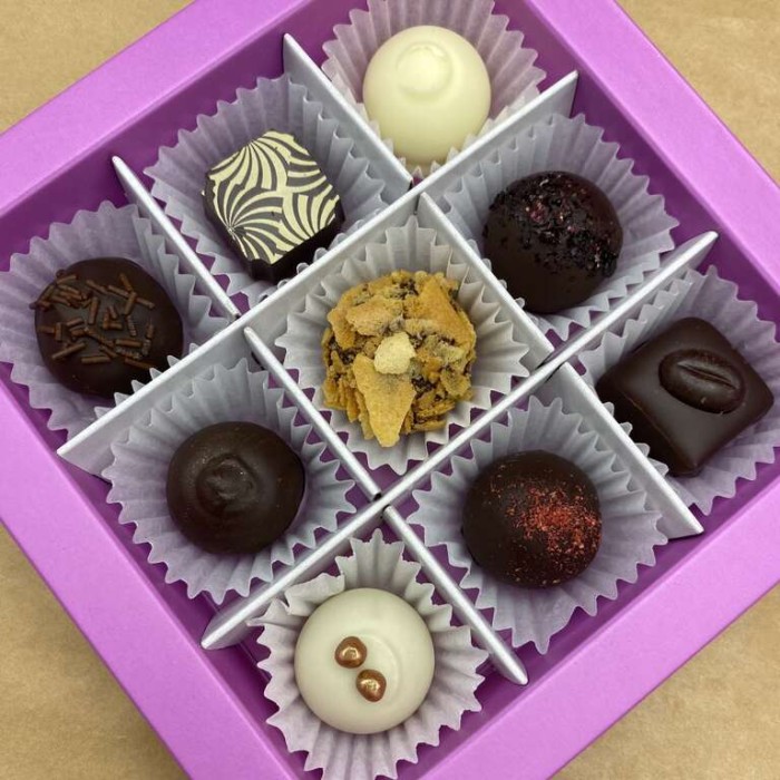 Ассорти конфет ручной работы, сделанные из колумбийского, бельгийского и швейцарского шоколада с разными вкусами (могут изменяться):