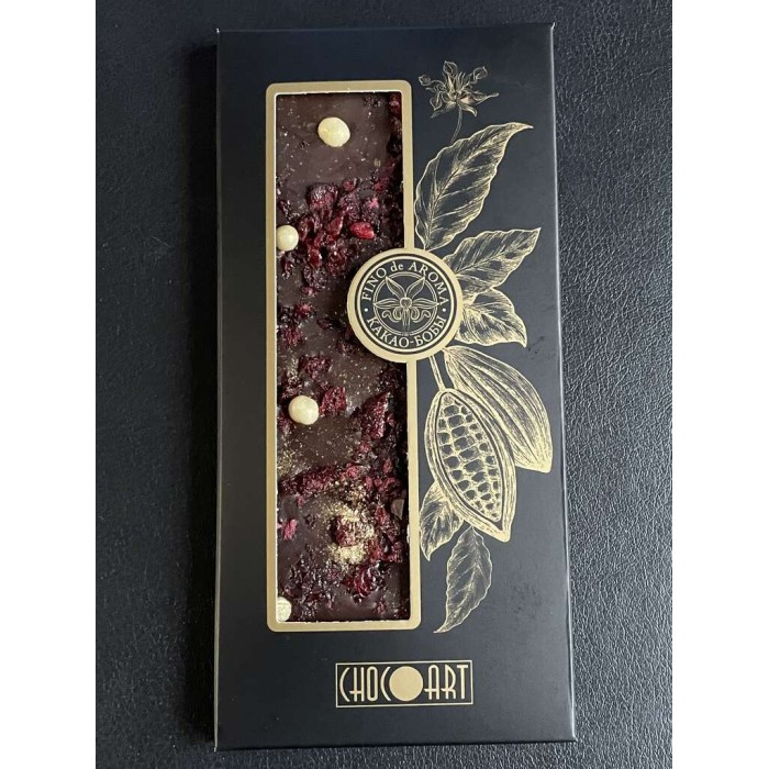 Состав Горький шоколад, содержащий 65% какао (тростниковый сахар, какао тертое, какао масло, лецитин), вишня, сахарный декор