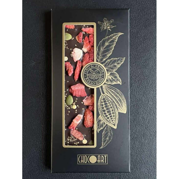 | Состав | Горький шоколад, содержащий 65% какао (тростниковый сахар, какао тертое, какао масло, лецитин), клубника, тыквенные семечки, сахарный декор |